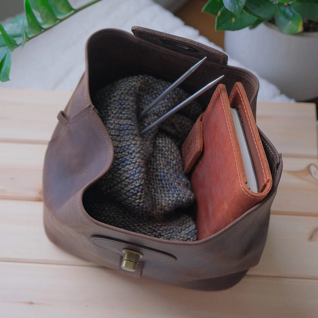 You'll love this one because it sits flat and opens wide at the top, perfect for quickly picking up and dropping in your work-in-progress projects. Thread & Maple designed this bag for 1-2 skein projects like socks, mittens, hats, and cowls.